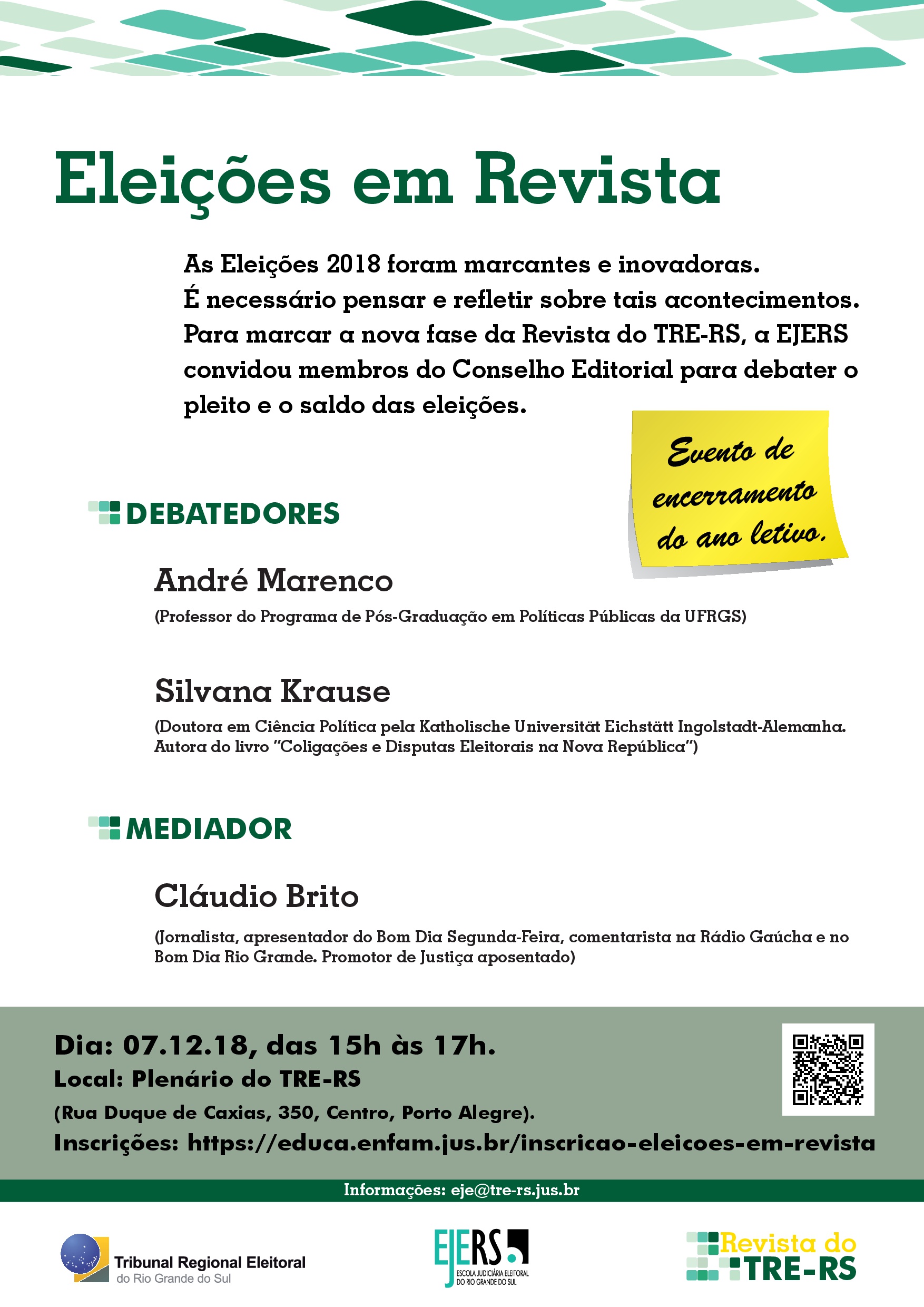 Por isso, comemorando a nova fase da Revista do TRE-RS, a EJERS convidou membros do seu Conselho Editorial para debater e relatar como a sociedade avalia o último pleito e o saldo das eleições: