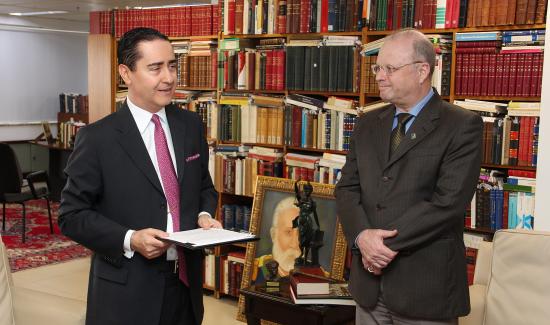 Estiveram presentes na cerimônia, realizada no Gabinete da Presidência do TRF4, o Coordenador da EJERS, Eduardo Silva da Silva e o Chefe da Seção de Programas Institucionais, Cristiano Friedrich Boiko.
